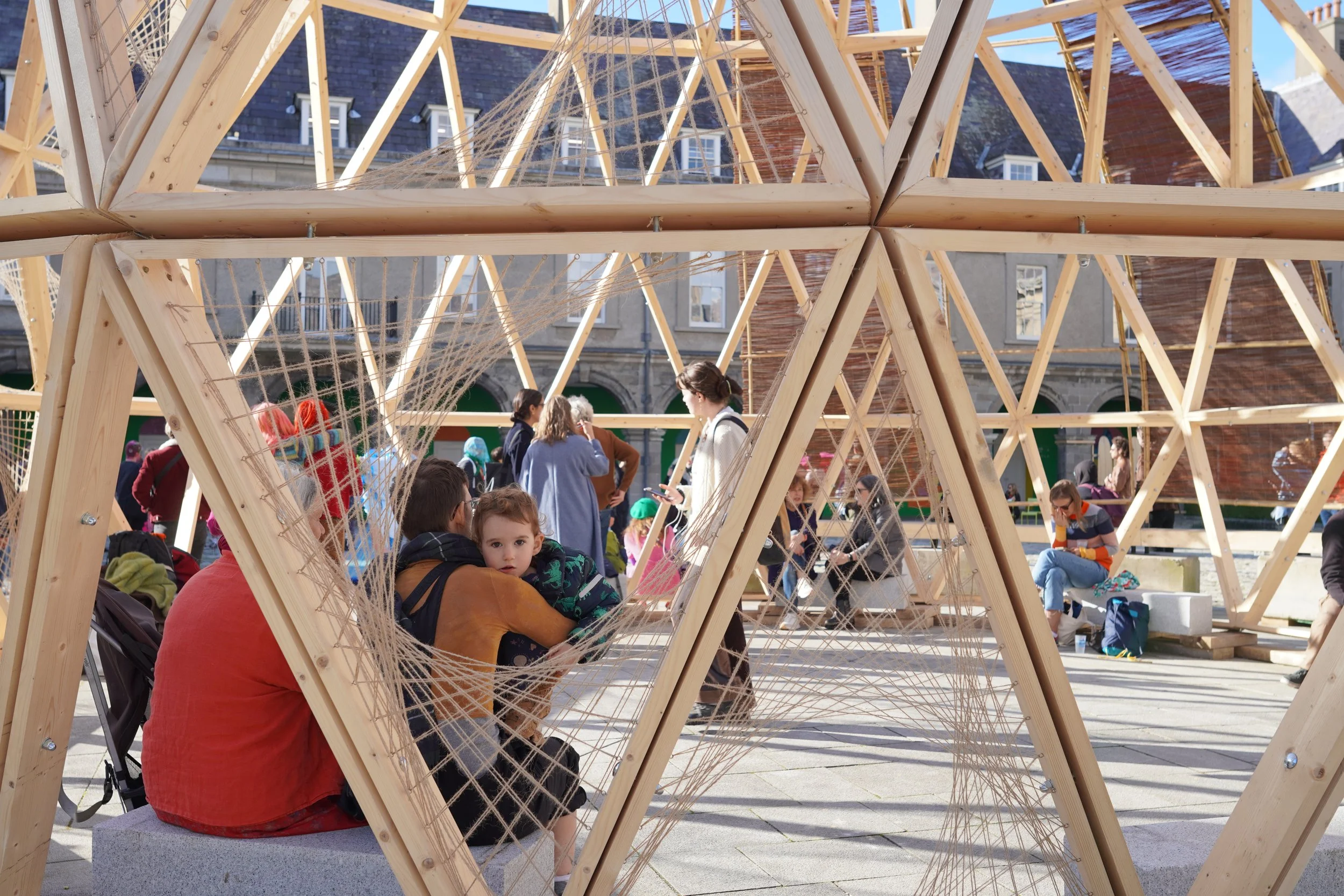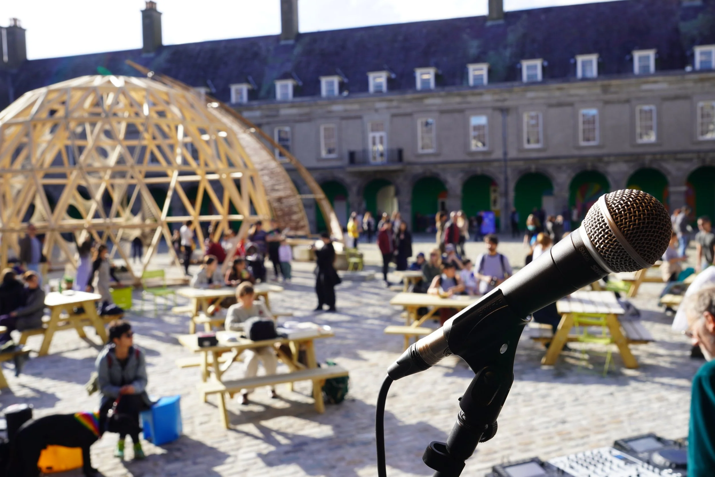 Earth Rising, IMMA’s new Eco Art Festival, presented over 70 contributors, artist commissions, talks, workshops and showcased a stunning Built to Disappear eco pavilion sponsored by Lioncor and designed by Reddy Architecture + Urbanism. Over the three days, Earth Rising planted the seeds of sustainability, enabling audiences of all ages to participate, discuss, experiment, and innovate. The festival, which focused on citizens assembly, brought together a wide variety of eco artists, practitioners and activists from across the island of Ireland.
